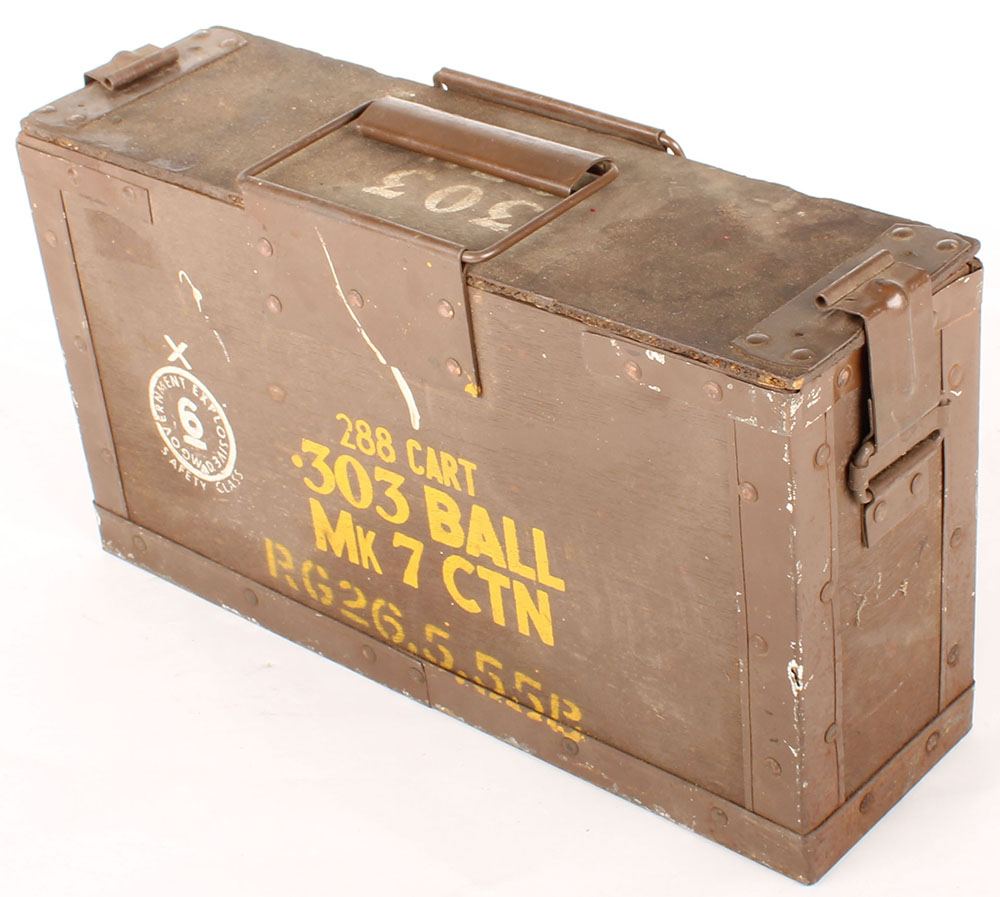 | British, .303 British wooden ammo crate, empty, metal parts have...