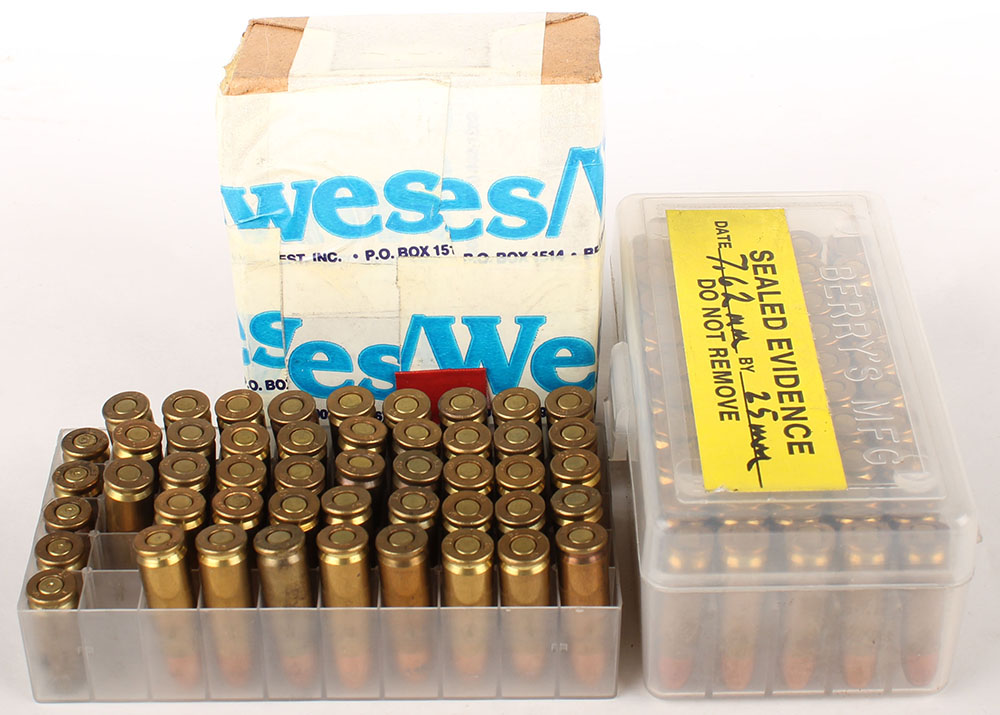 Lot of approx. 140 Rds. Of 7.62 x 25mm Tokarev, mix of military surplus & hand loads, 5 shot cases, ammo ranged from very good to fair, some cases have cracks on neck, primers on surplus ammo are corrosive. Grade: Very Good - Value: 30 to 90
