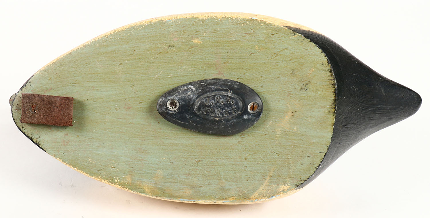 Redhead Drake by Jim Slack, Pekin, IL, glass eyes, hollow wood, excellent original comb paint, the Hen pair is in the next lot, 13 1/2'' OAL. Grade: Excellent ++ - Value: 50 to 100