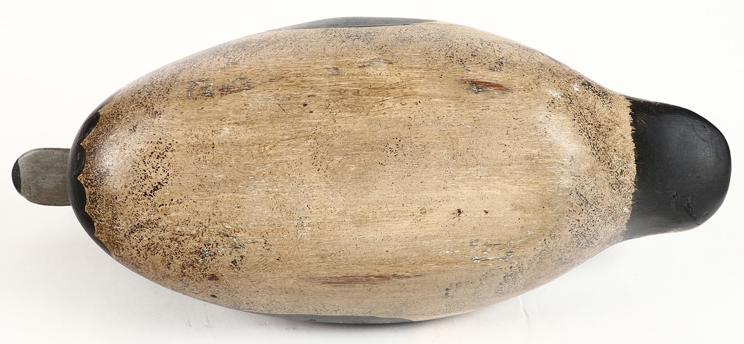 Bluebill Drake by Mason Decoy Company, Detroit, MI, 1896-1924, Standard Grade, glass eyes, repaint, solid wood, 14'' OAL. Grade: Excellent - Value: 30 to 100