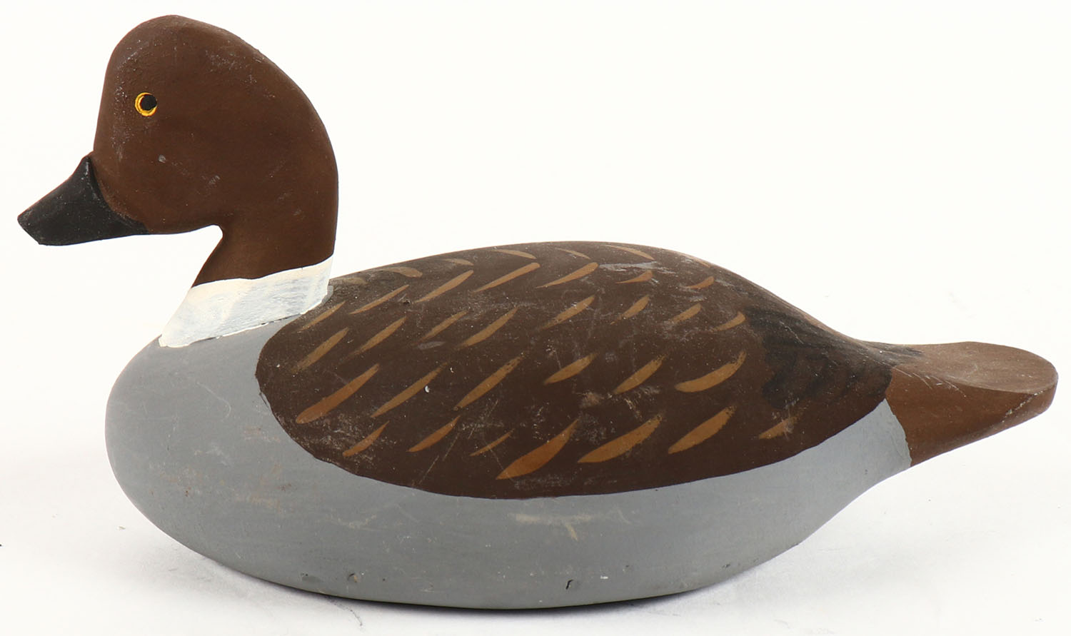 Miniature Golden Eye Hen by Jessie Urie, Rock Hall, MD, GE, solid wood, original paint, 6'' OAL. Grade: Excellent ++ - Value: 40 to 80
