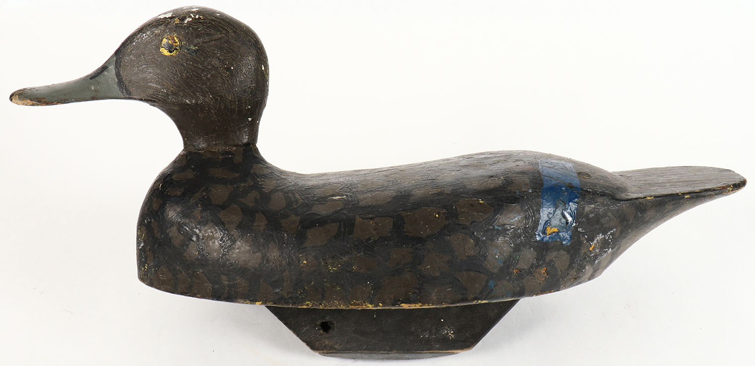 Black Duck by unknown maker, TE, solid wood, repaint, structurally excellent, 16 1/2'' OAL. Grade: Excellent - Value: 20 to 40