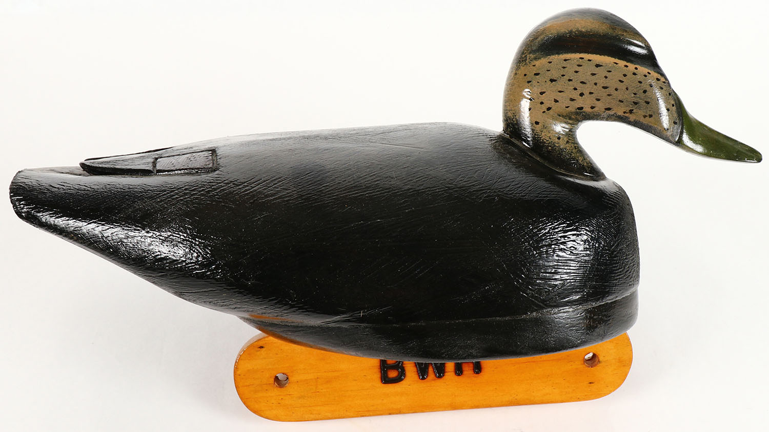 Black Duck by BWH, no eyes, hollow wood, original paint, structurally excellent, 17 1/2'' OAL. Grade: Excellent ++ - Value: 20 to 40
