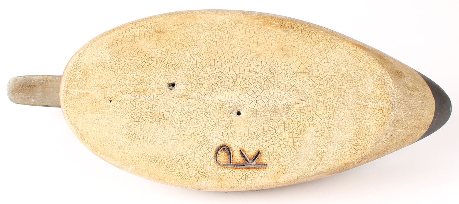 Widgeon Drake by PK, GE, solid wood, original paint, branded PK on bottom, 14 1/2'' OAL. Grade: Excellent - Value: 20 to 40