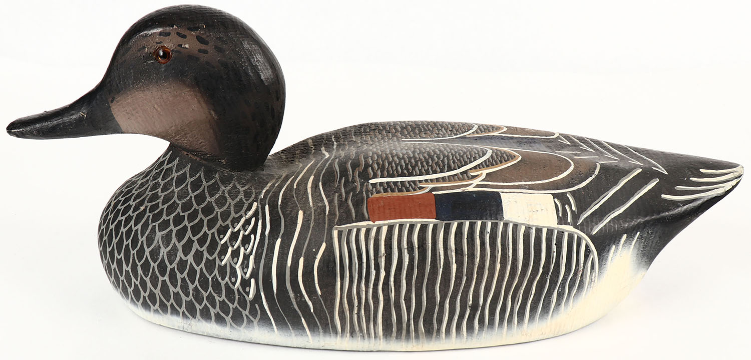 Gadwall Drake by Herters Decoy Co., Waseca, MN, 1893 series, glass eyes, solid wood, original paint, structurally excellent, marked on bottom. Grade: Excellent ++ - Value: 40 to 100