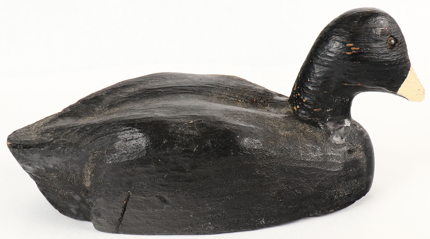 Coot by Herters Decoy Co., Waseca, MN, 1893 series, glass eyes, solid wood, original paint, structurally excellent, unmarked on bottom. Grade: Excellent - Value: 30 to 90