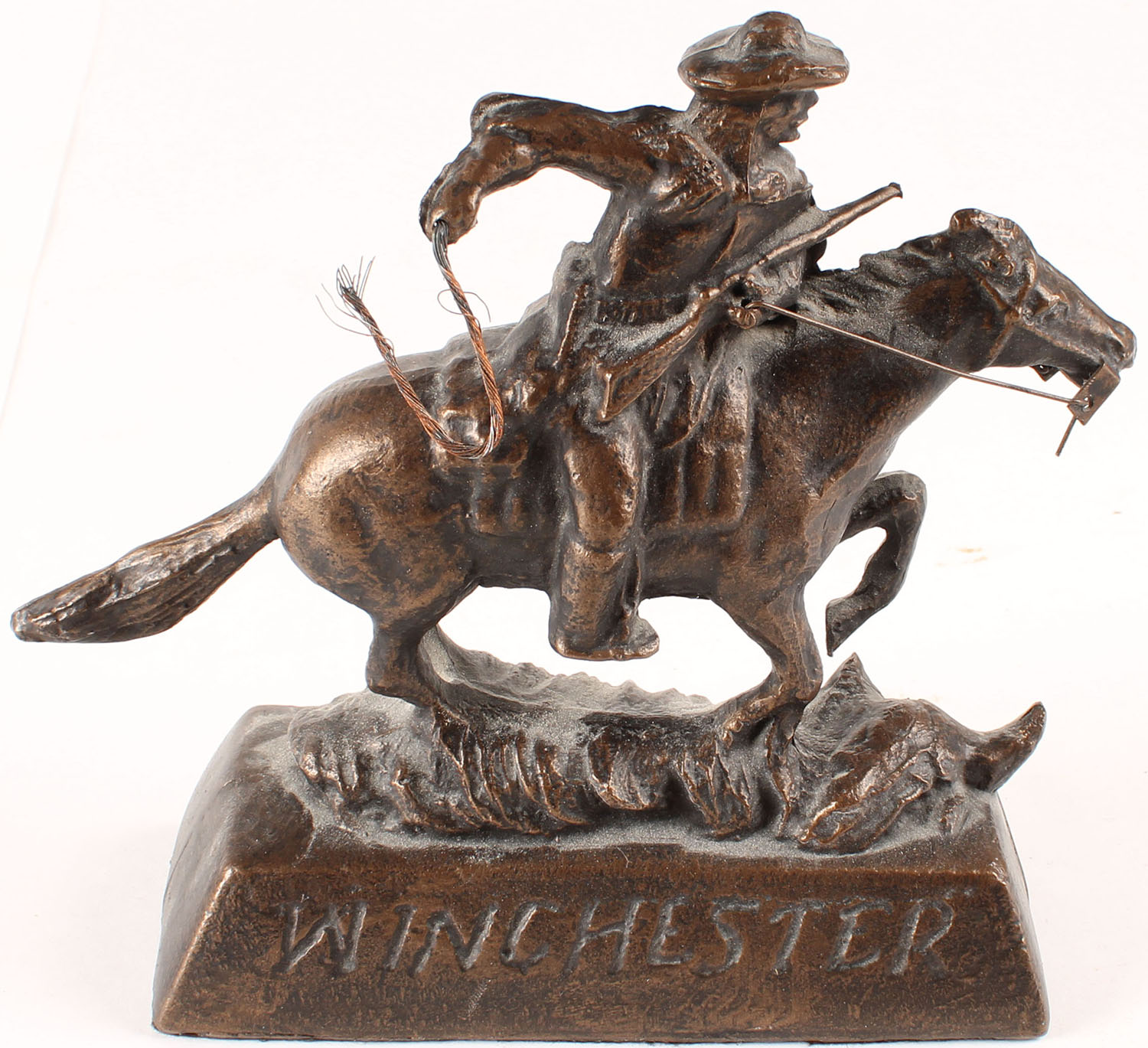 Winchester horse and rider statue, bronze, 8'' x 7''. Grade: Excellent - Value: 20 to 80