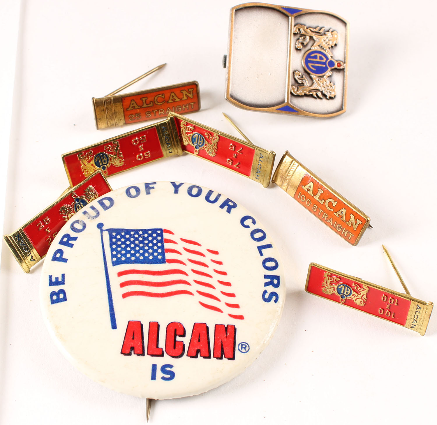 Large lot of Alcan pinbacks. Grade: Excellent ++ - Value: 4 to 40