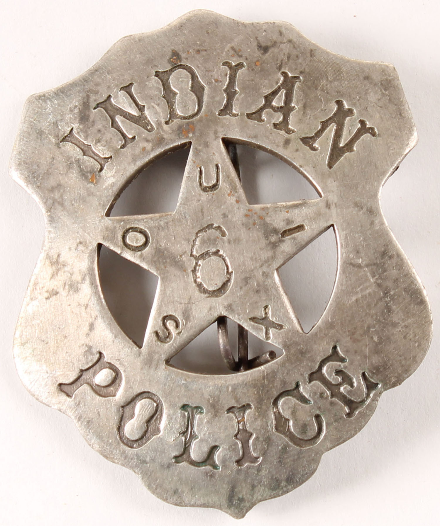 Indian Police badge Sioux 6 dated 1888 pinback. Grade: Very Good ++ - Value: 100 to 400