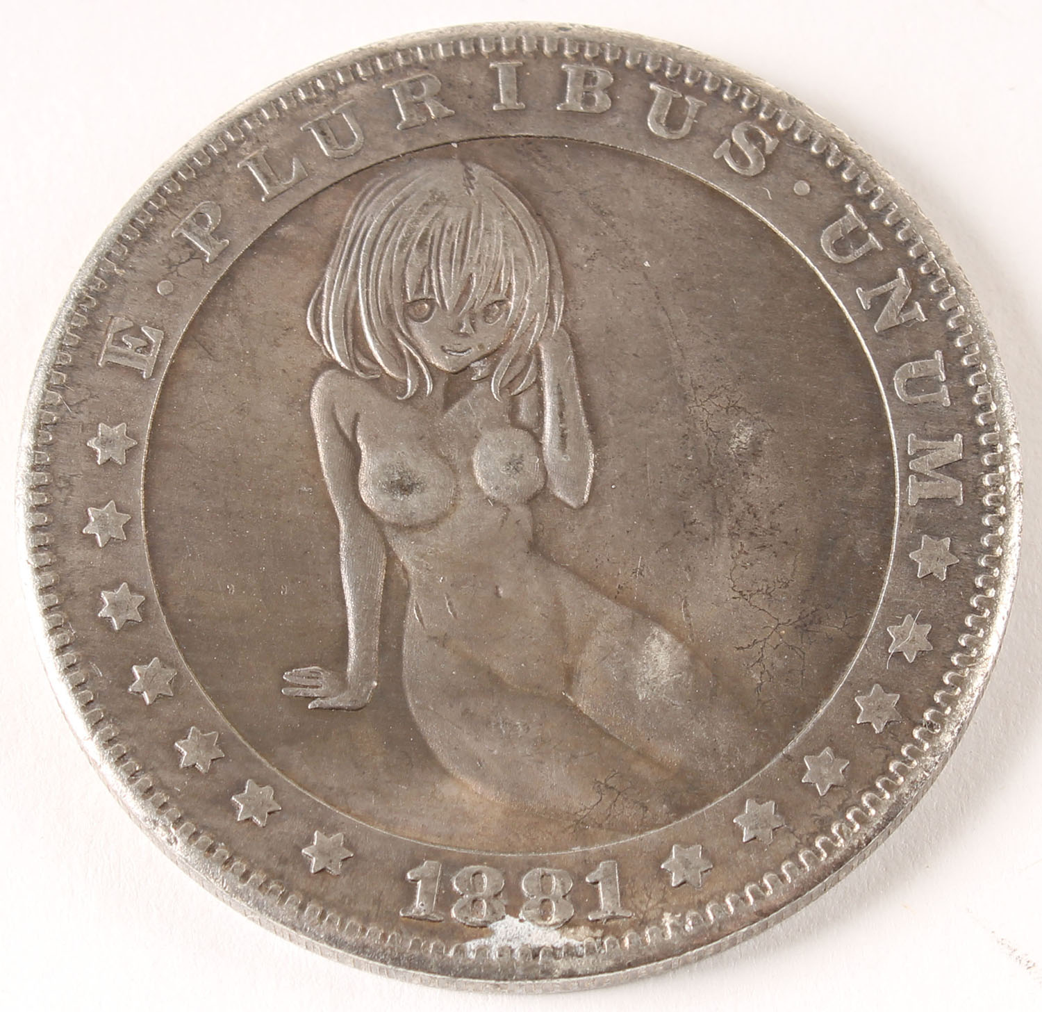 RARE! 1881 nude silver dollar coin with eagle on back. Grade: Excellent - Value: 100 to 400