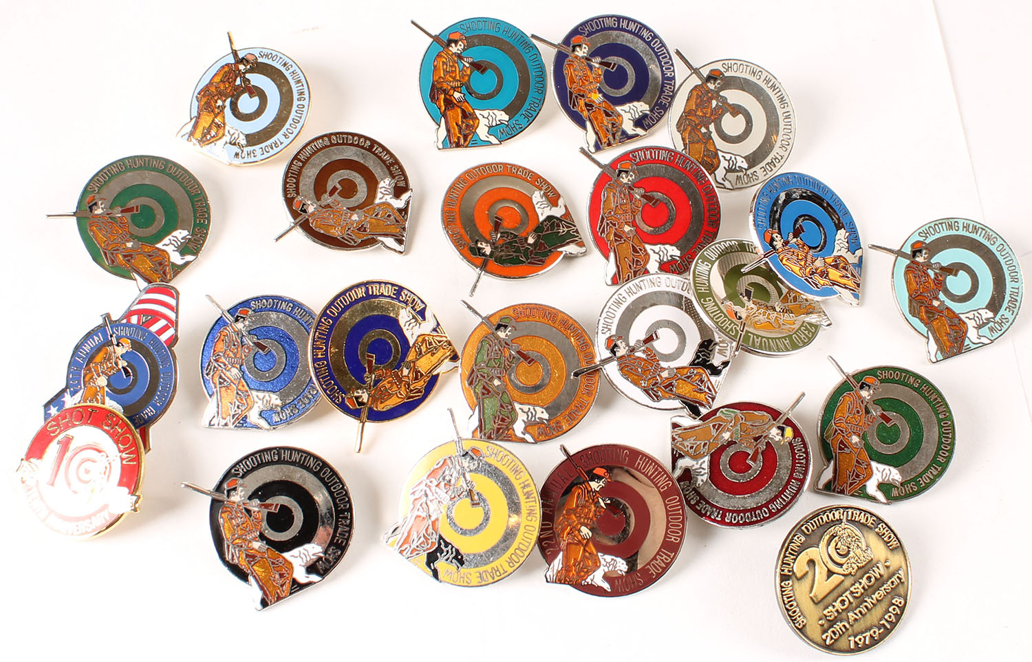 Lot of Shooting Hunting Outdoor trade Show pinbacks. Grade: Excellent - Value: 10 to 100