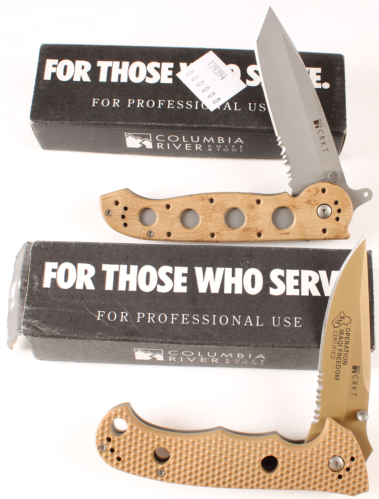 Lot of 2 Columbia River knives, 4'' folding blade, in box. Grade: MINT - Value: 20 to 80