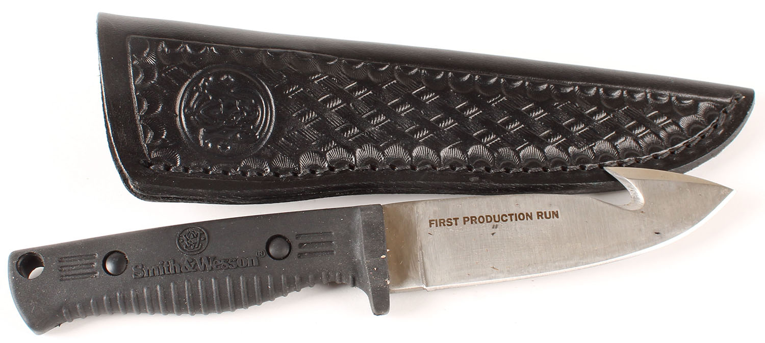 S&W First Production run knife, rubber handle, 3 1/2'' blade. Grade: Excellent - Value: 16 to 50