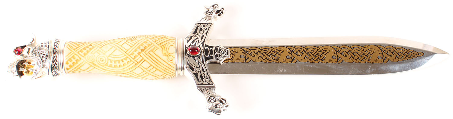 Foreign made knife, intricate design ton blade and handle, 8 1/2'' blade, all bright and clean. Grade: Excellent - Value: 20 to 60