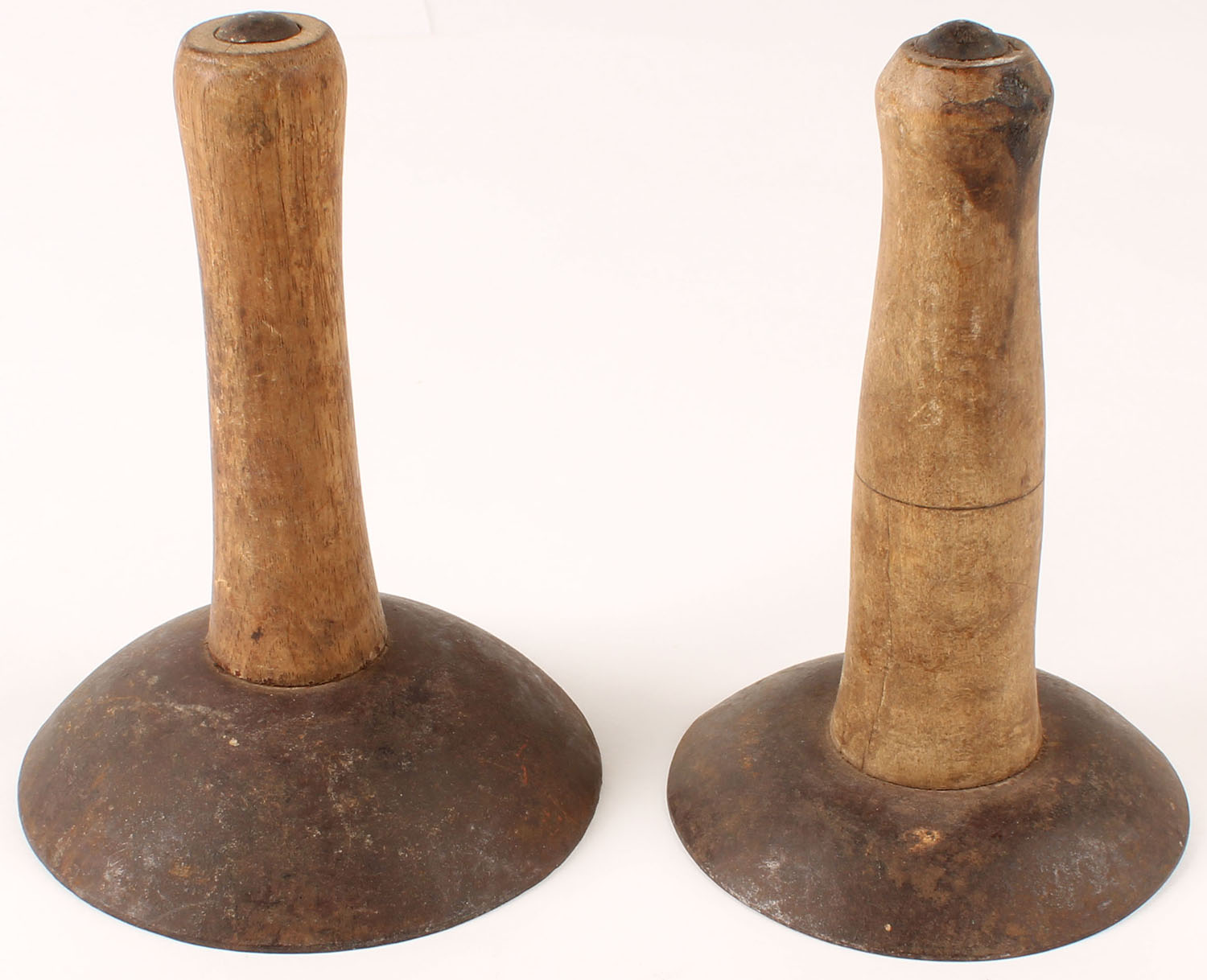 Lot of 2 Vintage Hog Scrapers, has metal bell with wood handle, these are used to prep the hog for butchering, once you boil the pig this will scrap all the hair of the skin. Grade: Very Good + - Value: 2 to 20