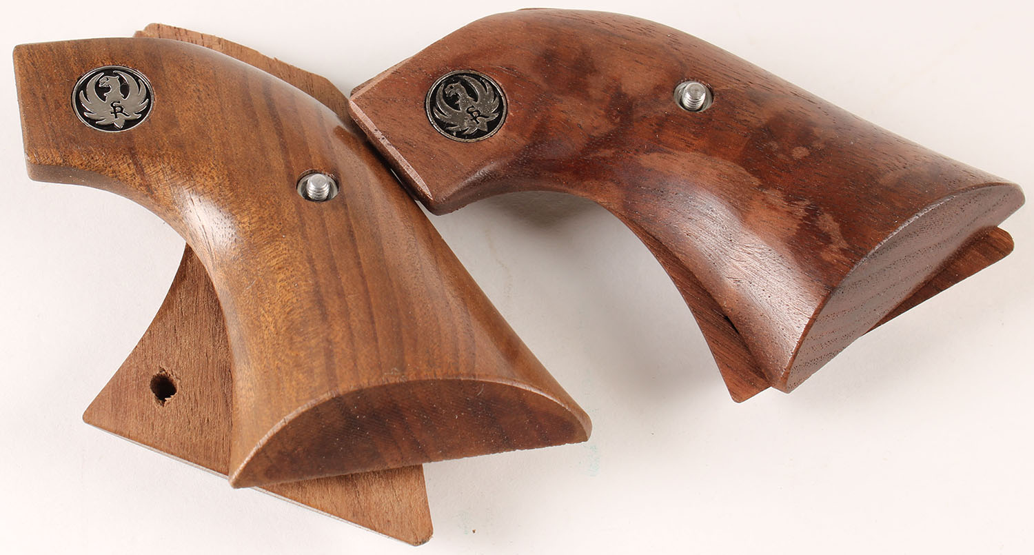Lot of 2 Pairs of Ruger pistol grips, wood, with screws. Grade: Excellent - Value: 20 to 80