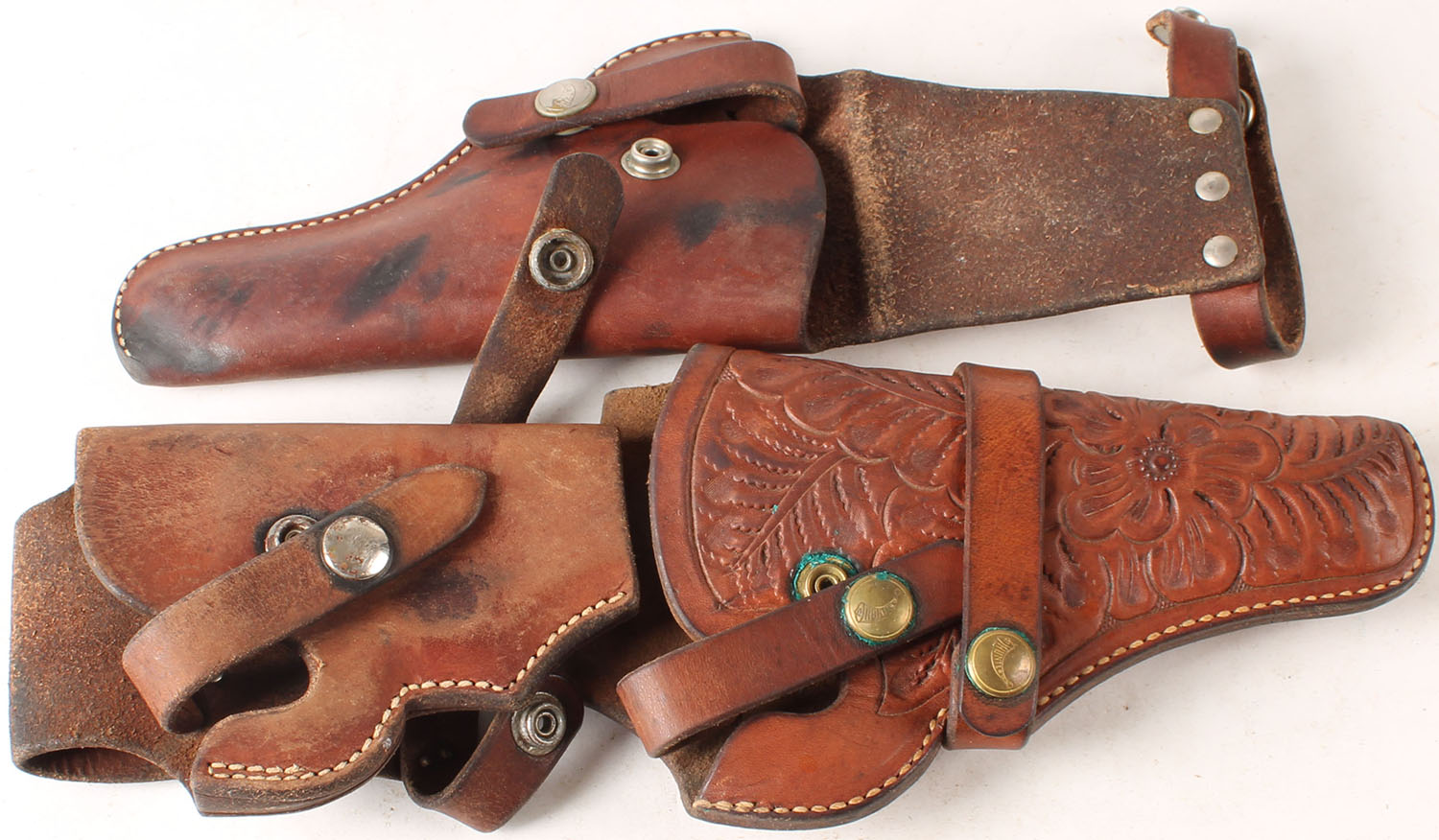 Lot of 3 leather holsters. Grade: Very Good - Value: 10 to 100