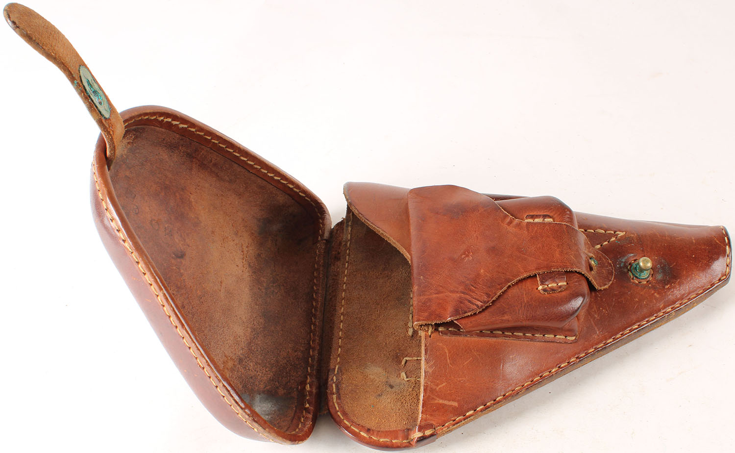 Leather holster with cover. Grade: Excellent - Value: 10 to 100
