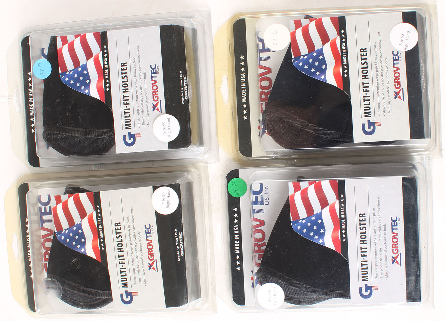 Lot of NIB pistol holsters in the original packaging, see photo for more details. Grade: MINT - Value: 2 to 40