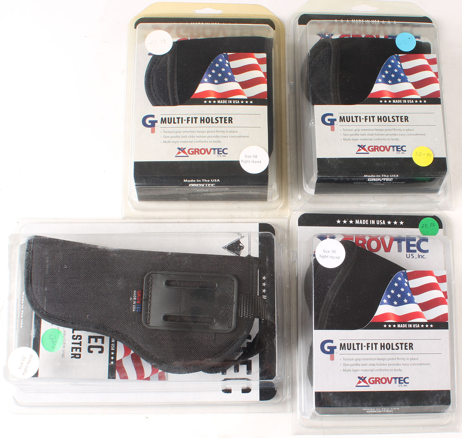 Lot of NIB pistol holsters in the original packaging, see photo for more details. Grade: MINT - Value: 2 to 40