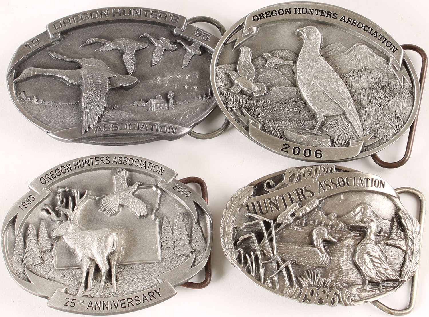 Lot of Oregon Hunters Asso. Belt buckles. Grade: Excellent - Value: 10 to 60