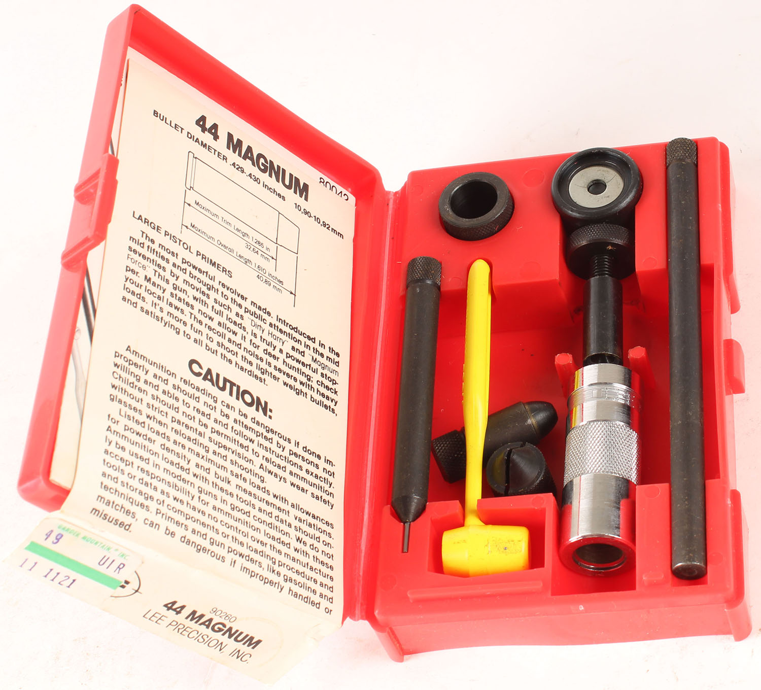 Lee reloading set, .44 mag cal., Full & Complete, in orignal box. Grade: Very Good ++ - Value: 20 to 60