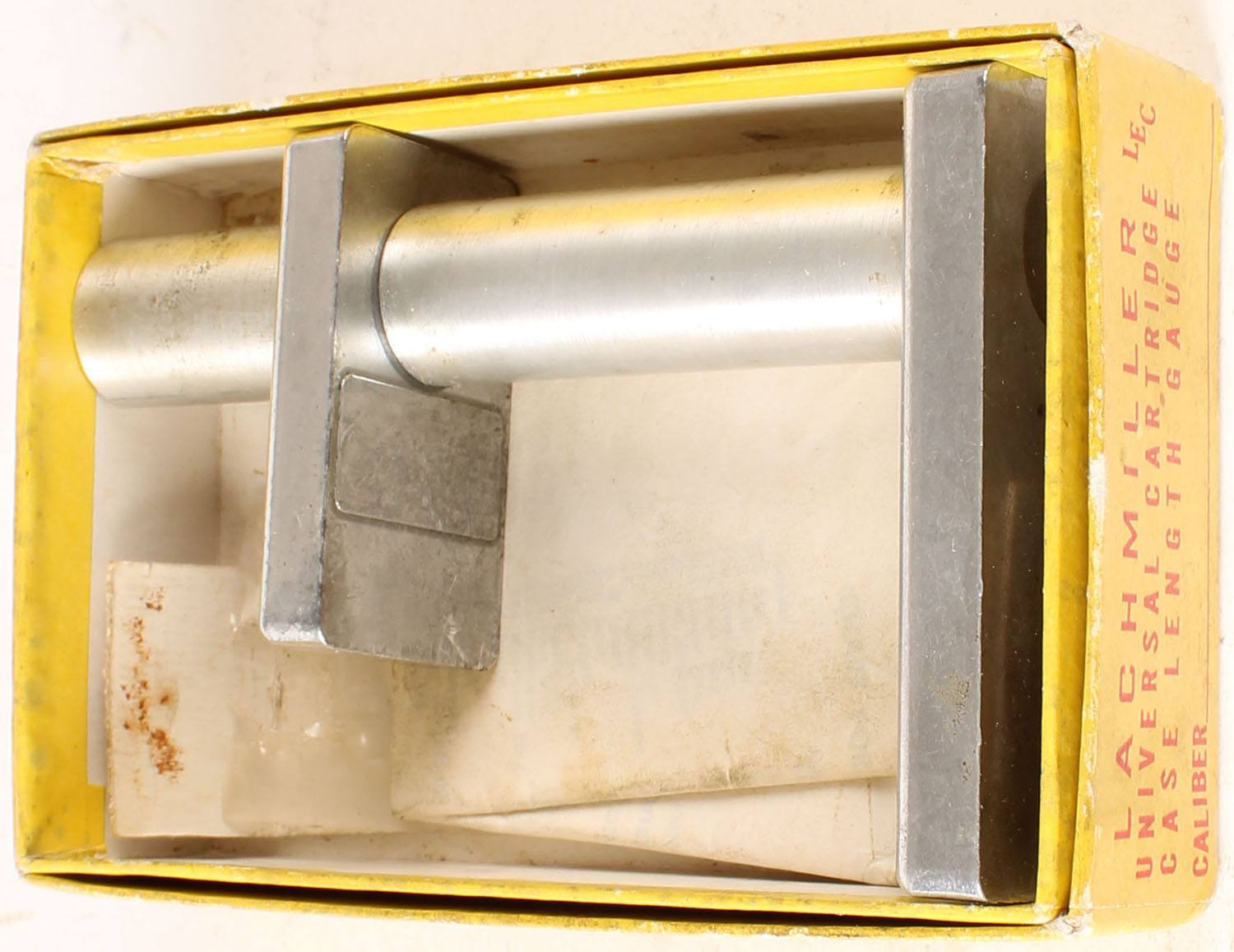 Lachmiller, Precision Made Cartridge Case Length Gauge, box is solid with good color, gauge is excellent. Grade: Very Good ++ - Value: 4 to 40