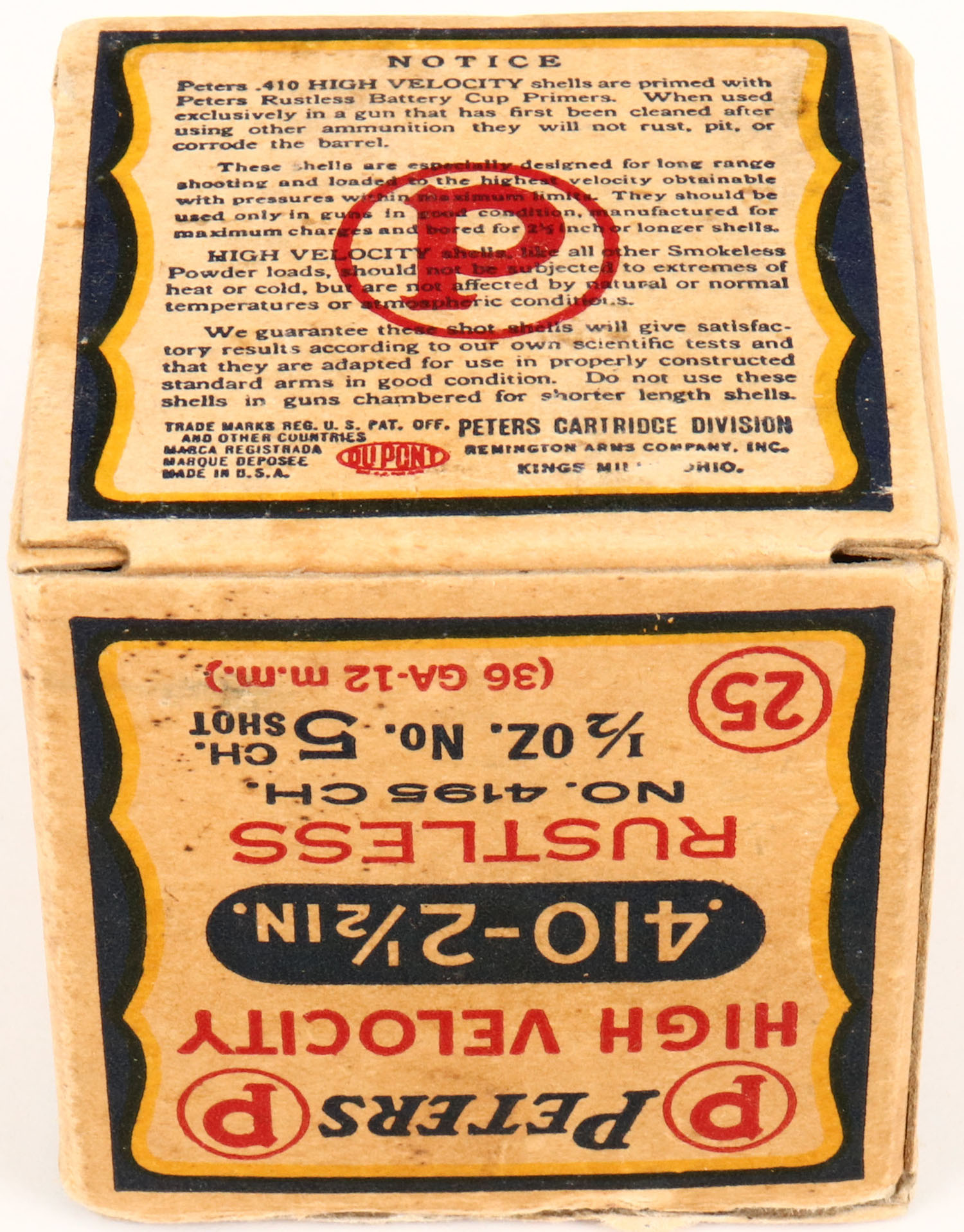 | Peters Cart. Co., Blue Bill box HIGH VELOCITY, Rustless, 410ga. ...