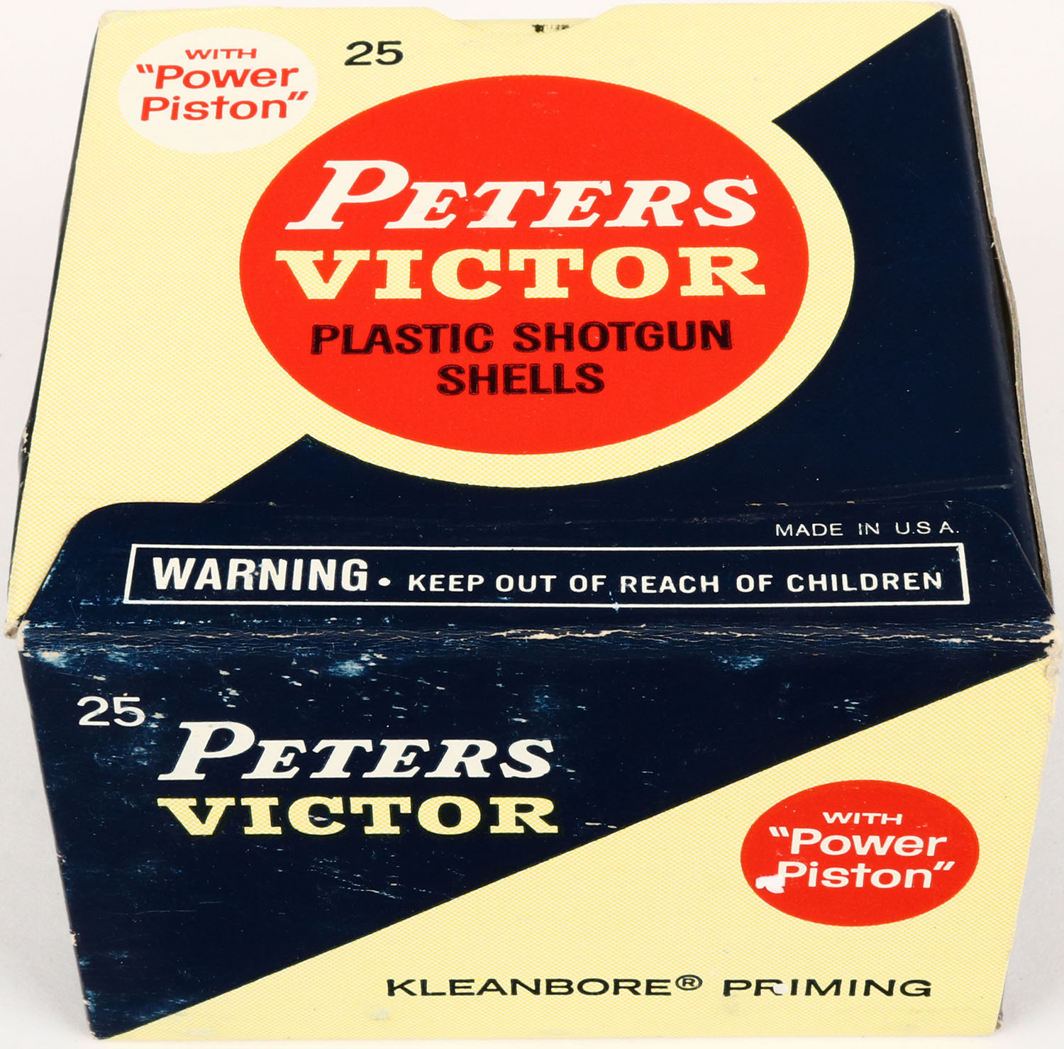 Peters, VICTOR, 16ga., 1pc., Full, shot size 8, red, blue & tan box, box is very solid with very nice colors, shells are excellent. Grade: Excellent + - Value: 10 to 40