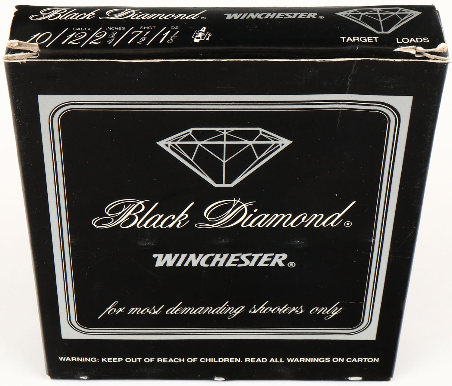 Winchester Black Diamond, 12 ga., 7 1/2, black, silver & white box, solid box, ammo is mint. Grade: Excellent ++ - Value: 10 to 40