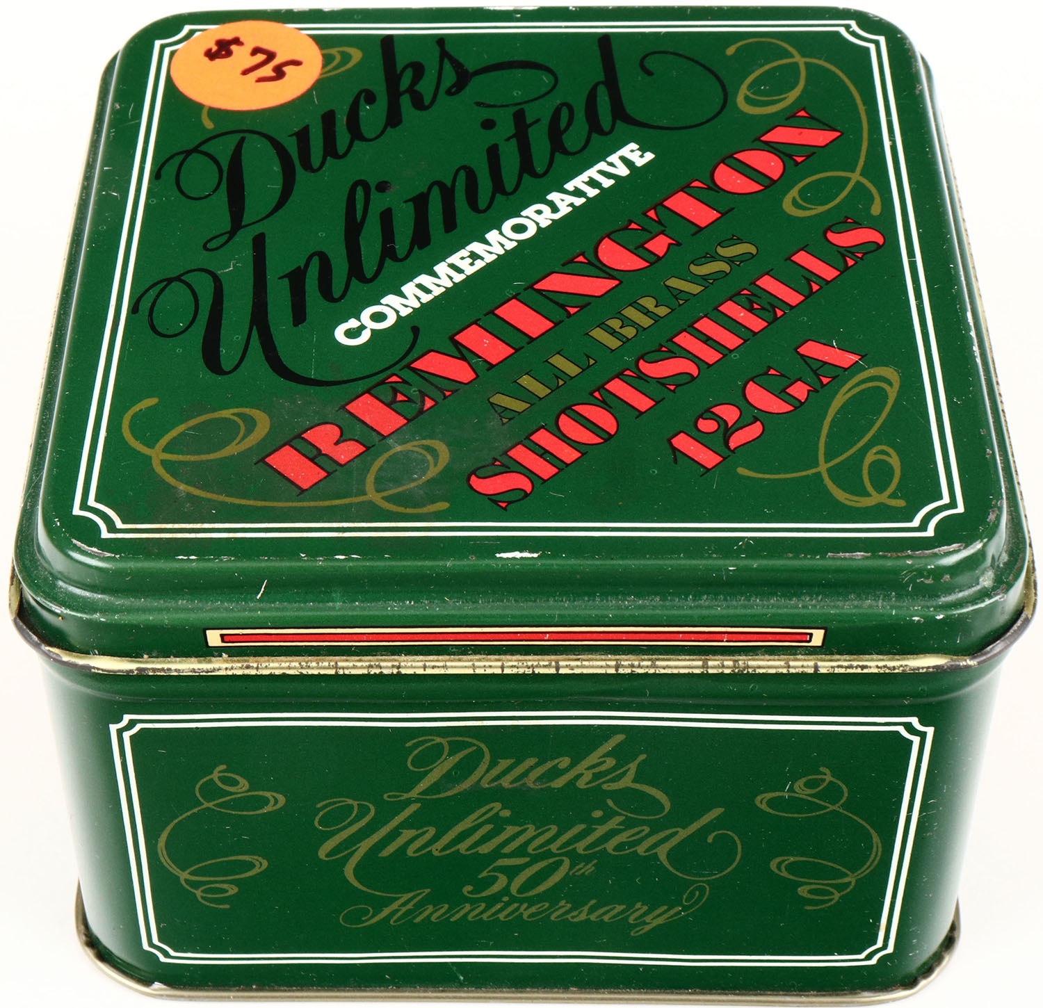 Duck Unlimited Commemorative Remington All Brass Shotshells 12ga., Partial 24rds, Factory Insert, metal tin has very nice graphics with some scratches, shells are excellent. Grade: Excellent + - Value: 30 to 100