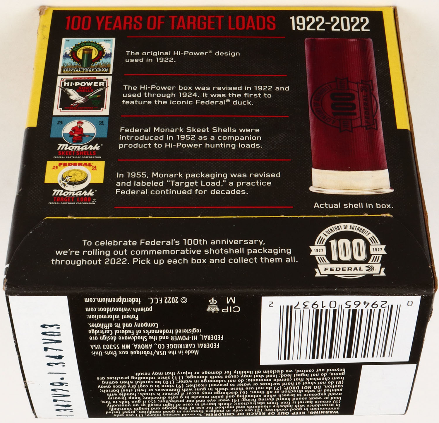 | Federal Cart. Co., Monark 100 Year Anniversary, 12ga., 1pc., Ful...