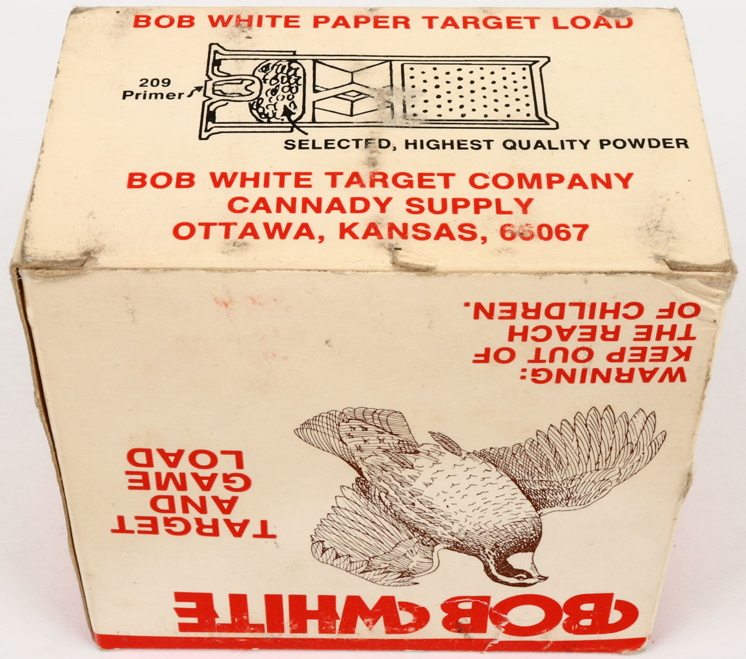 Bob White Target Company, 12ga., 1pc., FULL, shot size 7 1/2, box is solid, Shells are excellent. Grade: Excellent + - Value: 8 to 20