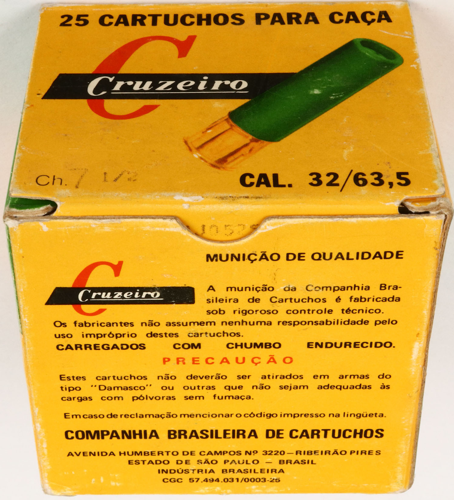 Cruzeiro, 32ga., 1pc., FULL, shot size 7 1/2, box is solid, Shells are excellent. Grade: Excellent + - Value: 10 to 40