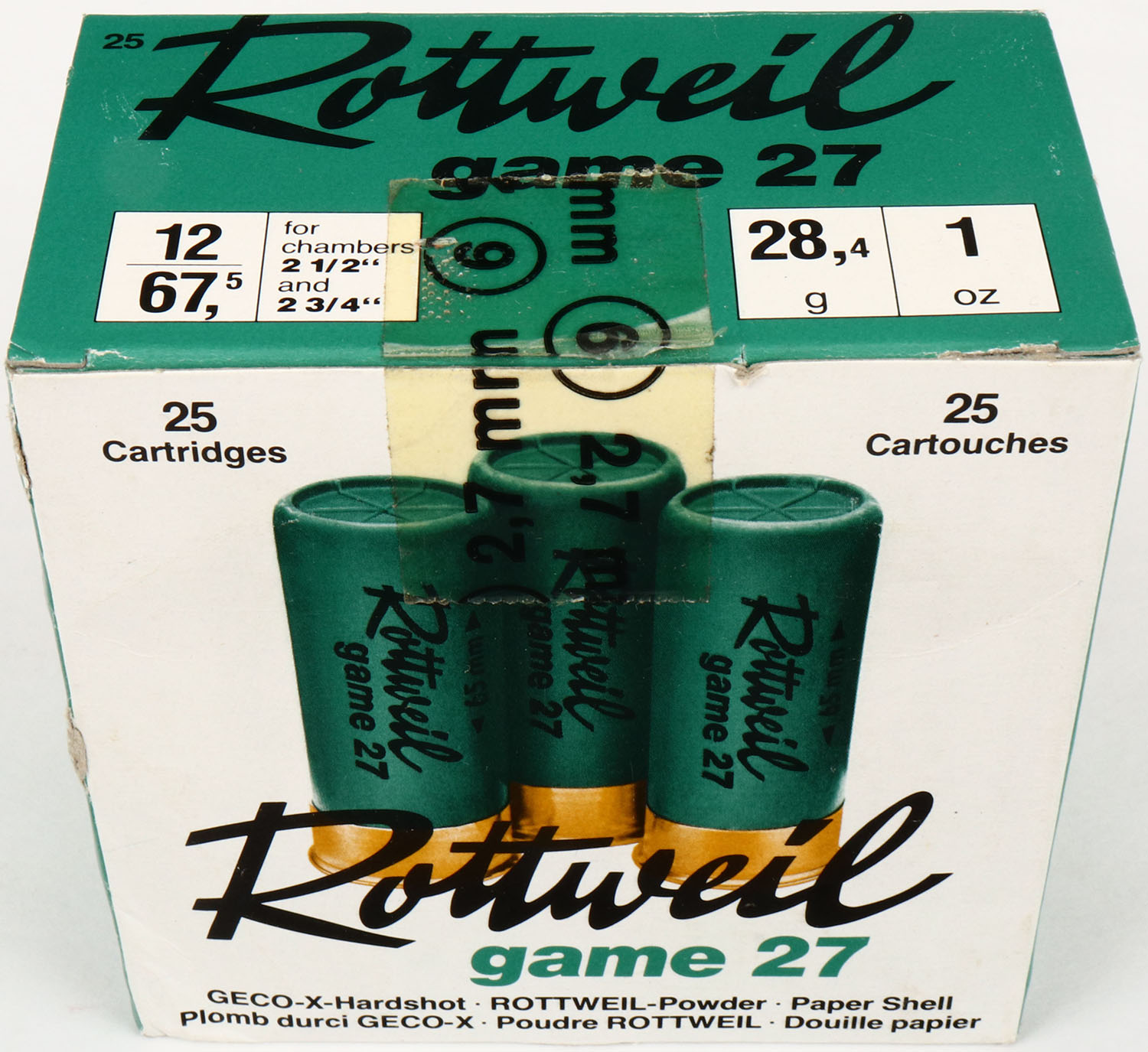 | Rottweil, Game 27, 12ga., 1pc., FULL, shot size 6, box is solid,...