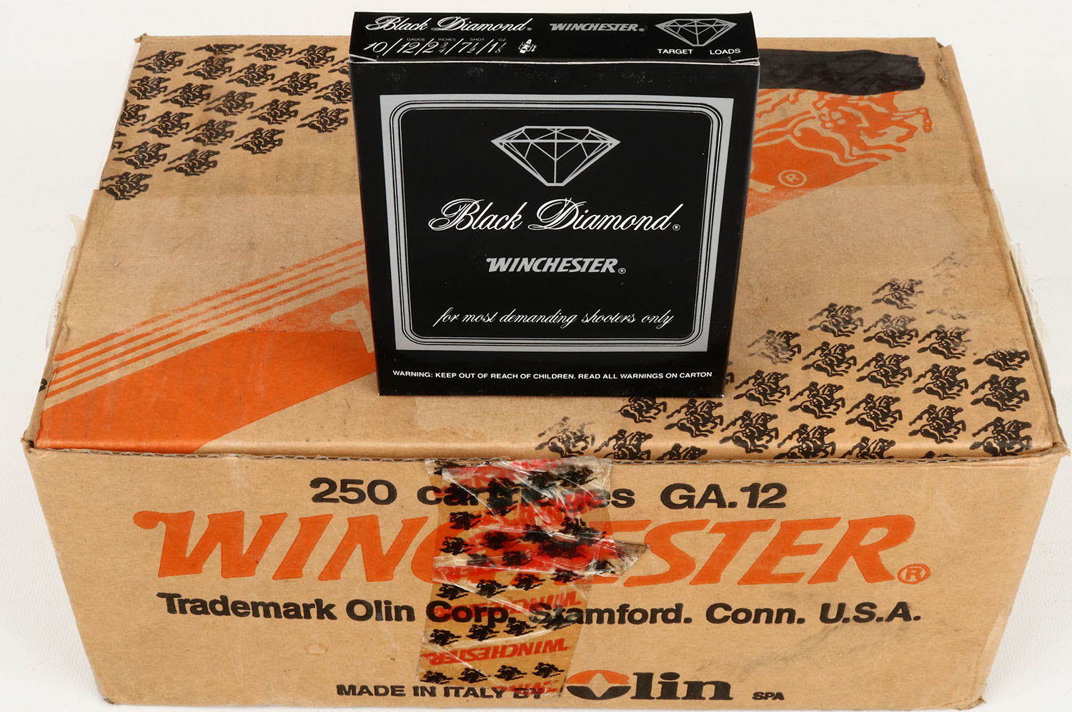 Winchester Black Diamond, 12ga., 1pc., Full Case of 26 boxes, 260rds, shot size 7 1/2, box is very solid, Shells are excellent. Grade: Excellent + - Value: 80 to 300