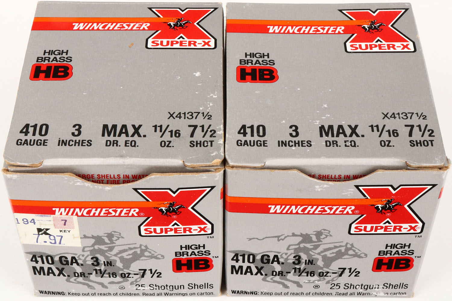 Lot of 2 Winchester, 410ga., 1pc., Mostly Full, shot size 7 1/2, boxes are solid, Shells are excellent. Grade: Excellent + - Value: 10 to 40