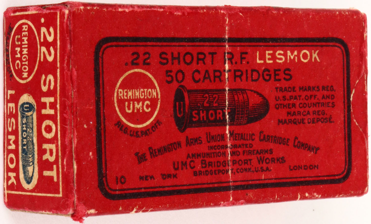REM-UMC, .22 Short, Lesmok, RHWeb: REM-4 S-2B, Full, 1pc. Red & black box, box is solid with excellent color, very minor edge & corner wear, end flaps are solid, ammo is excellent. Grade: Excellent ++ - Value: 10 to 50