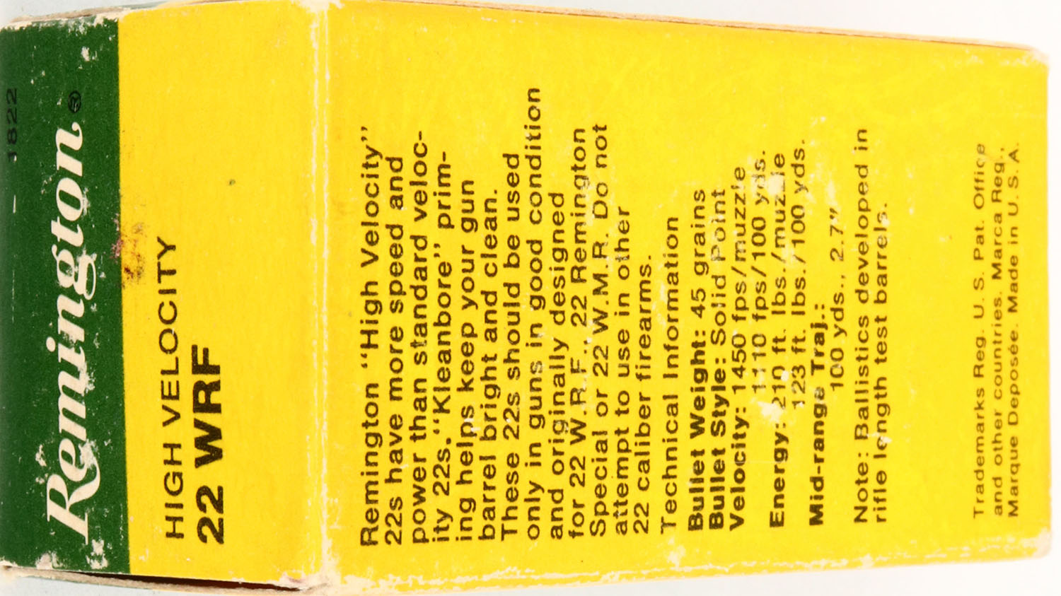 | Remington, High Velocity, .22 WRF, RHWeb: REM-19 WRF-1a, Full, 1...