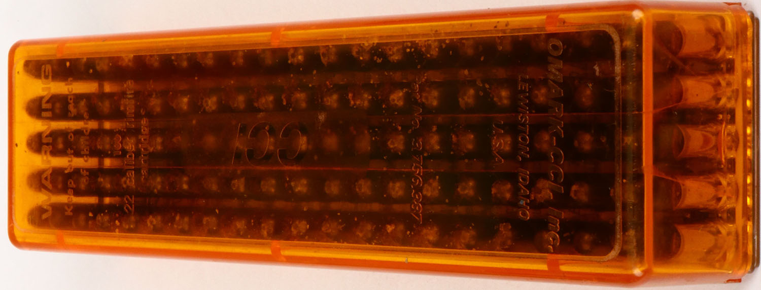 CCi, Mini Group, .22 Long Rifle, Standard Velocity, RHWeb: CCI-6 LR-3, Full, 2pc. Amber box with green & white label, box is solid, lid is somewhat cloudy, label is minty, ammo is minty. Grade: Excellent ++ - Value: 6 to 30