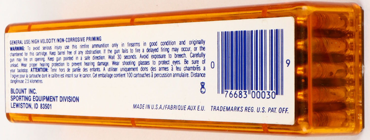 CCi, Mini Mag, .22 Long Rifle, RHWeb: CCI-6.1 LR-1b, FULL & SEALED, 2pc. Amber plastic tray with blue sealing label, box & label are mint. Grade: MINT - Value: 8 to 40