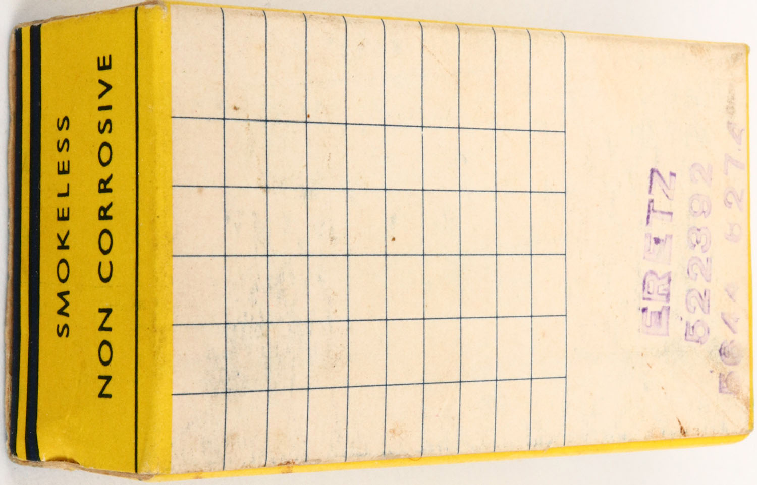 Lapua, Pienoiskivaarin, .22 Long Rifle, Match Grade, RHWeb: (Finland) L-1 LR-1e, Full, 1pc. Blue yellow & white box, box is solid with excellent color, very minor corner wear, edges are mostly crisp, end flaps are solid, ammo is excellent. Grade: Excellent ++ - Value: 8 to 40
