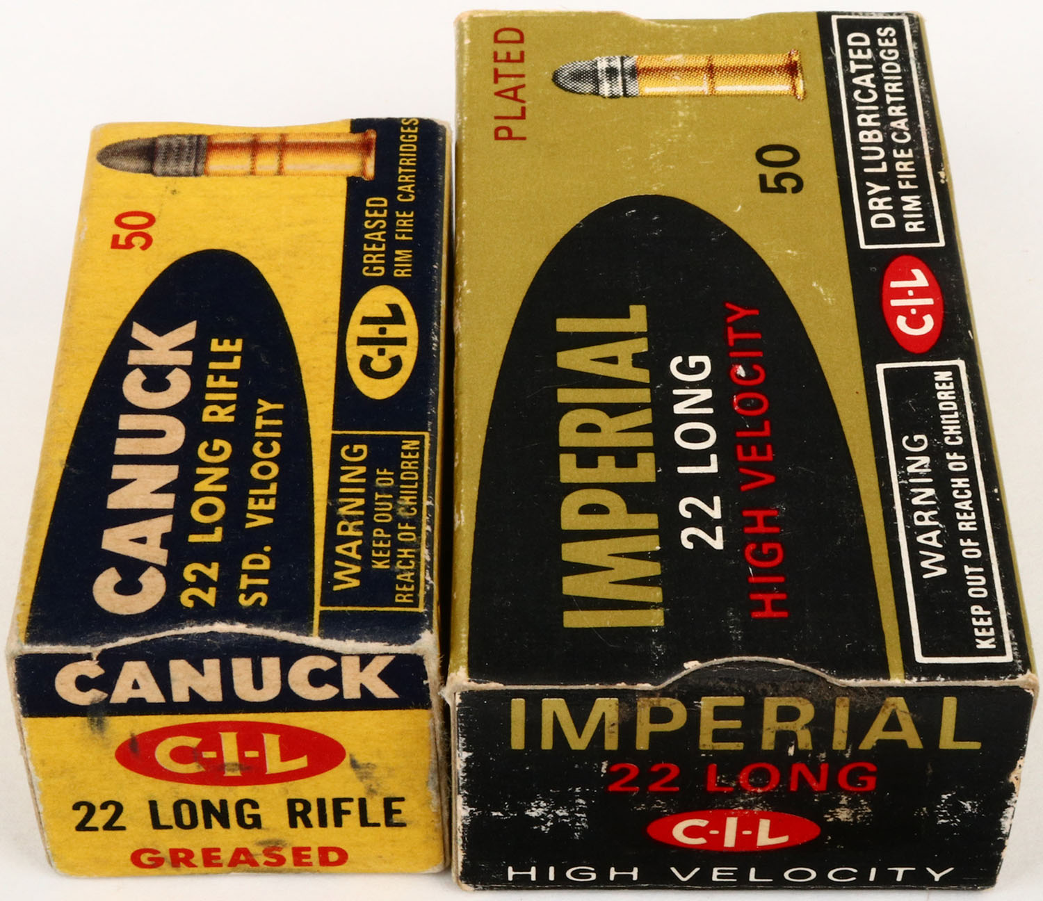C-I-L, Lot of (2) foreign boxes, all appear full. Grade: Excellent - Value: 10 to 100