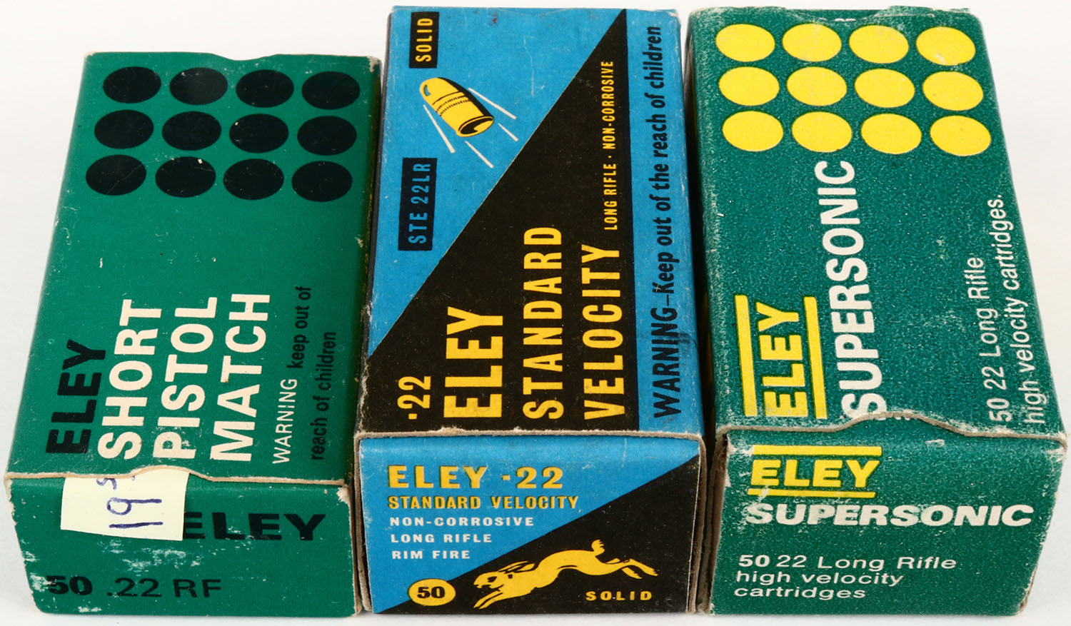 | ELEY, Lot of (3) foreign boxes, all appear full. Grade: Excellen...