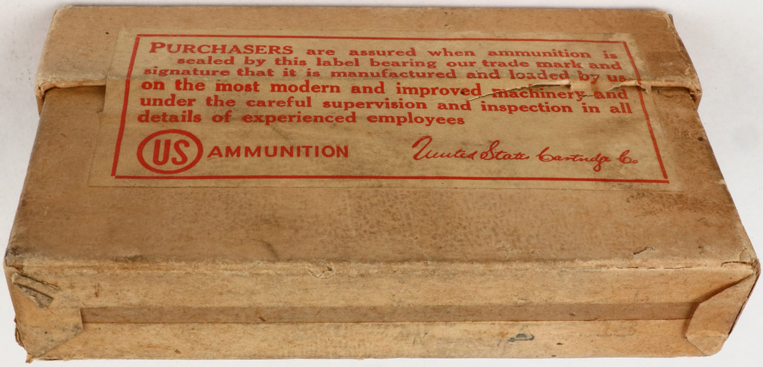 U.S. Cart. Co., .30 U.S. Gov't Blanks, Smokeless Powder, FULL & SEALED, 2pc. Buff box with buff & red labels, box is solid with very good color, age soiling, some edge & corner wear, labels are intact. Grade: Very Good ++ - Value: 20 to 80