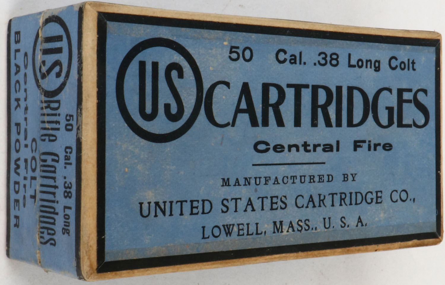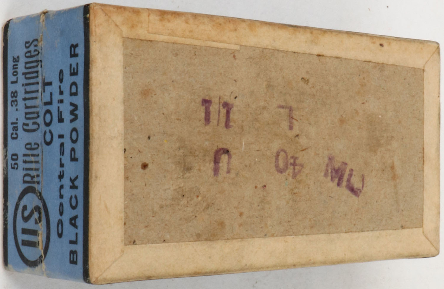 | U.S. Cart. Co., .38 Long Colt, Black Powder, Full, 1pc. Buff box...
