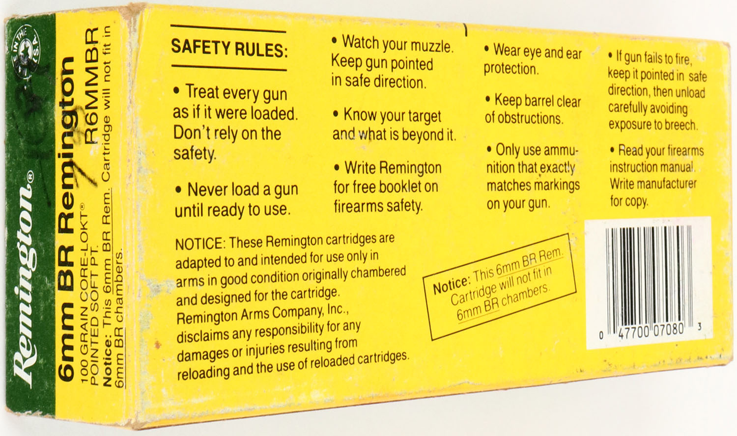 | Remington, High Velocity, 6mm BR Remington, 100 Grain Core-Lokt ...