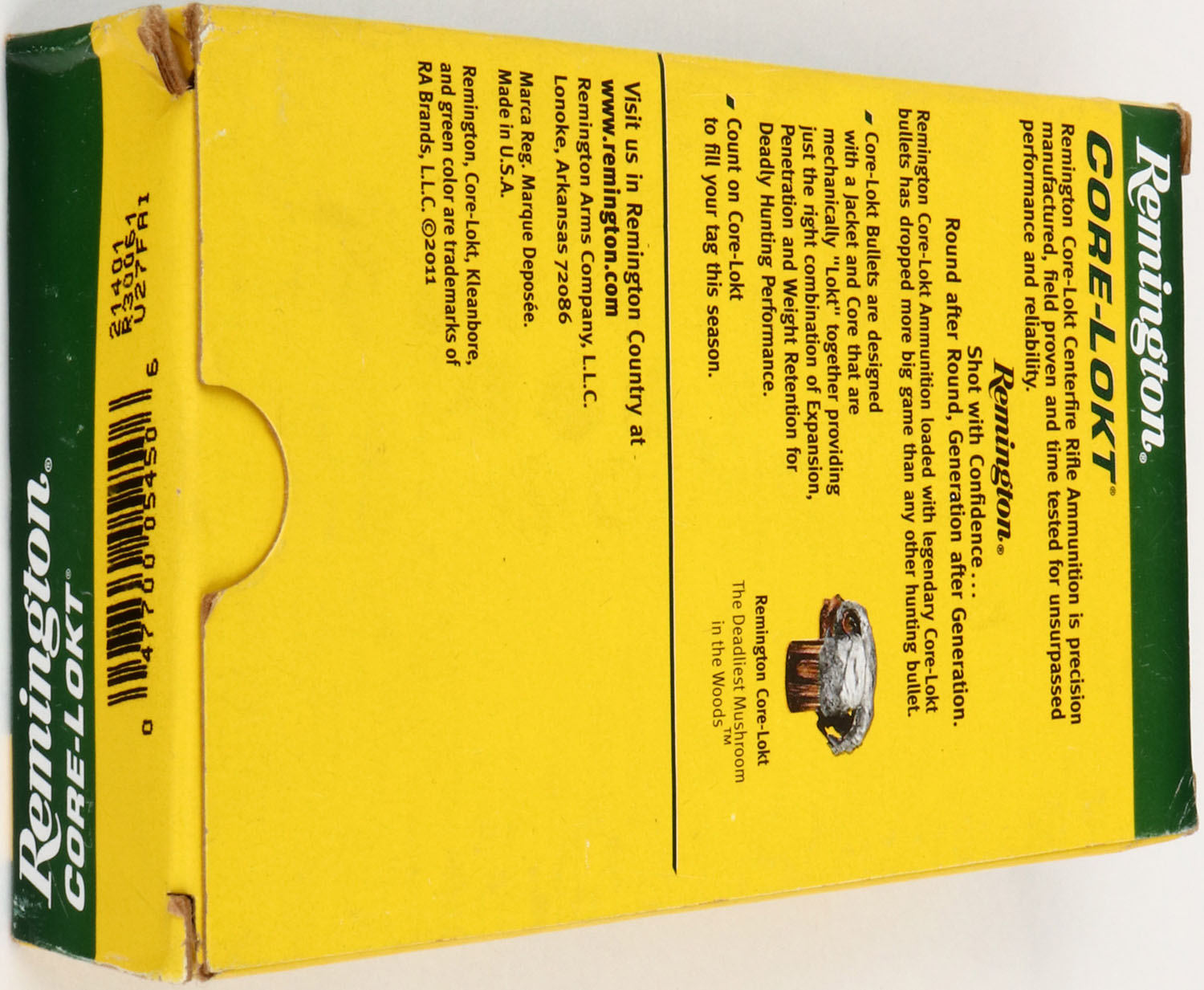 Remington, Core-Lokt, .30-06 Springfield, 125 Gr. Core-Lokt PSP, Full, 1pc. Green yellow & white box, box is solid with excellent to minty color, very minor shelf & corner wear, edges are crisp, end flaps are solid, ammo is excellent. Grade: Excellent + - Value: 20 to 60