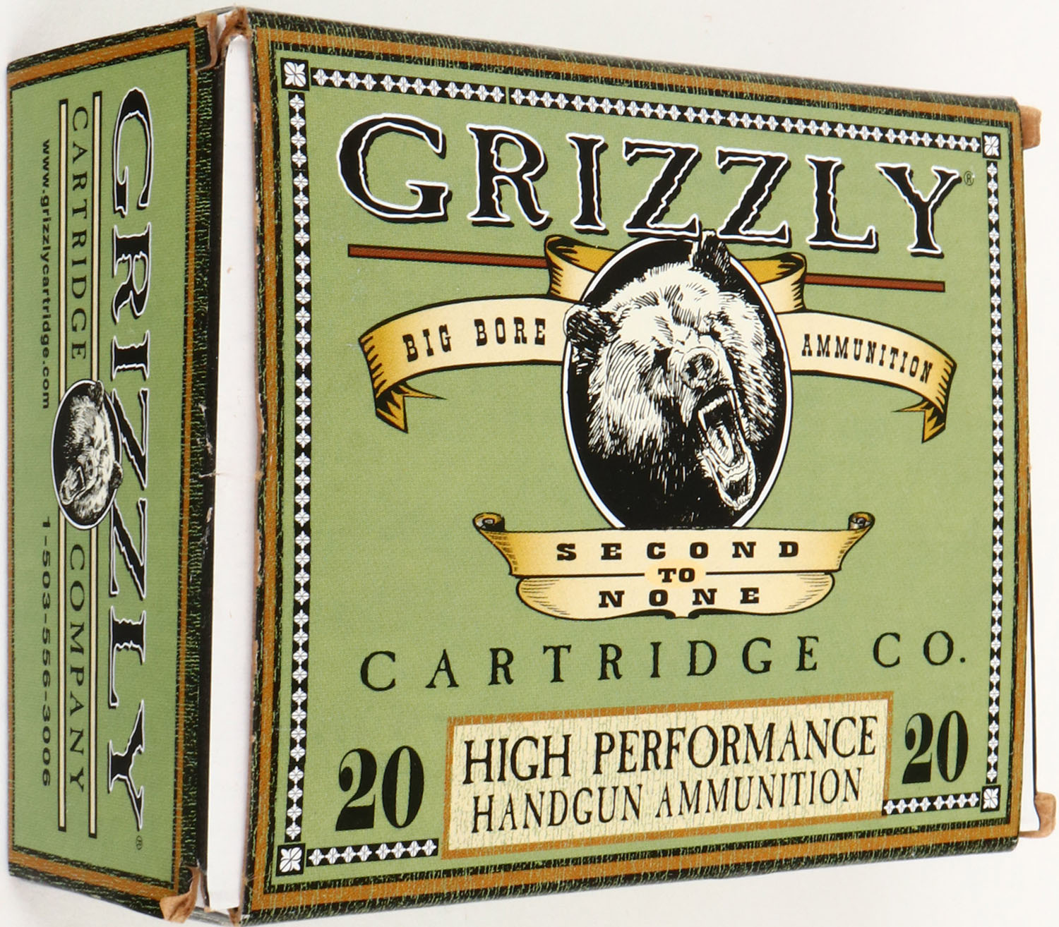 Grizzly, 10mm, 200Gr WFNGC, 1pc, Full, green box with white/yellow/black print, box is solid with excellent color & light wear, ammo is excellent. Grade: Excellent ++ - Value: 20 to 80
