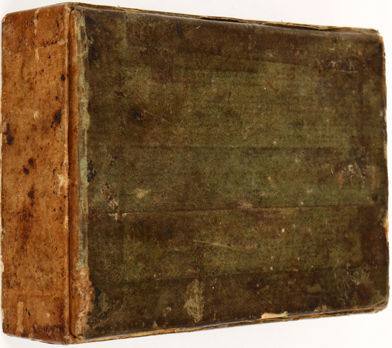 ELEY, .450 Express, Black Powder, 270 Gr. Bullet, 2pc, Full, buff box with green label & black print, box is solid with age soiling, tears in label & box, chunk of lid missing, left end flap missing, rub marks & edge wear, ammo is good. (732) Grade: Good ++ - Value: 10 to 100